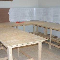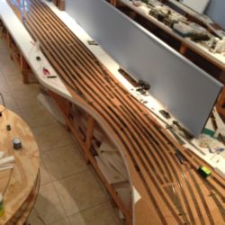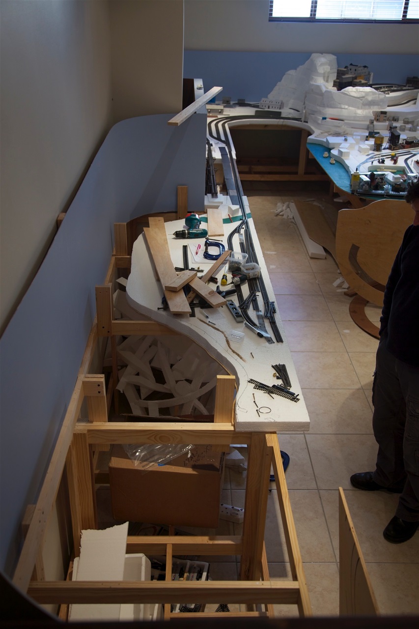 Some benchwork construction photos and trackwork. The benchwork is in the form of tables with a 10mm plywood top. The sub roadbed is 50mm foamalite. Some areas were elevated with splines. The backdrop and fascias are 4mm masonite.