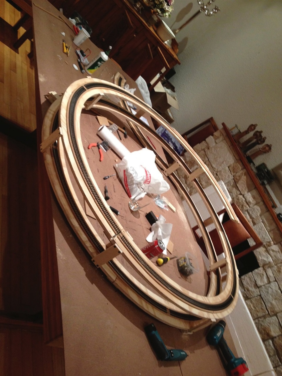 Second helix completed. Radius 24 inches. Grade 1,2 degrees. 6 complete circles.